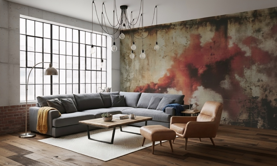 Das Ergebnis: Ein modernes Wohnzimmer mit urbanem Charakter und einem einzigartigen visuellen Statement.